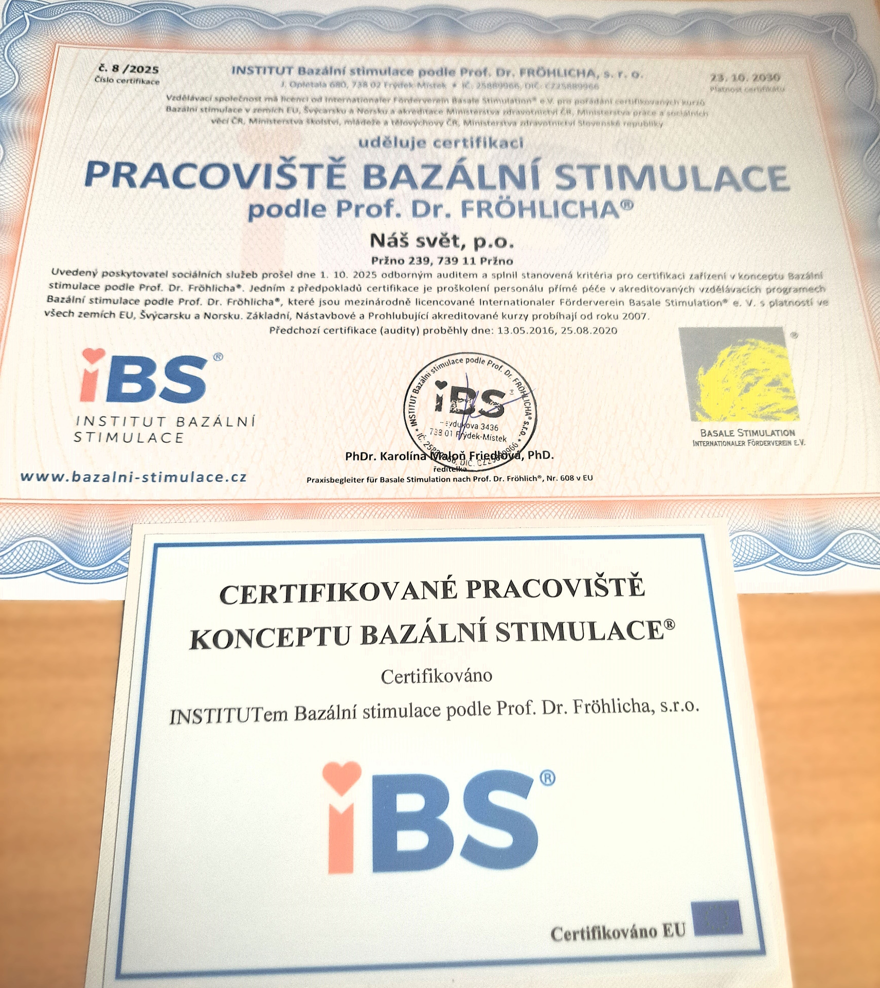 V rámci recertifikace "Pracoviště Bazální stimulace" jsme letos 2025 zvládli 2 školení a následný audit. Nadstavbový kurz kde 16 našich kolegů si rozšířilo své znalosti i praktické dovednosti v konceptu Bazální stimulace. Prohlubující kurz - dalších 16 zaměstnanců úspěšně absolvovalo kurz zaměřený na pokročilejší techniky. Recertifikace pracoviště-tady audit proběhl bez problému a certifikace je platná na dalších 5 let. Tento výsledek potvrzuje náš dlouhodobý závazek poskytovat kvalitní služby a péči na nejvyšší možné úrovni a neustále rozvíjet odborné kompetence našich pracovníků. Financování kurzu se podařilo zajistit díky podpoře Nadace ČEZ ve formě nadačního příspěvku. Děkujeme Nadaci ČEZ za jejich podporu!